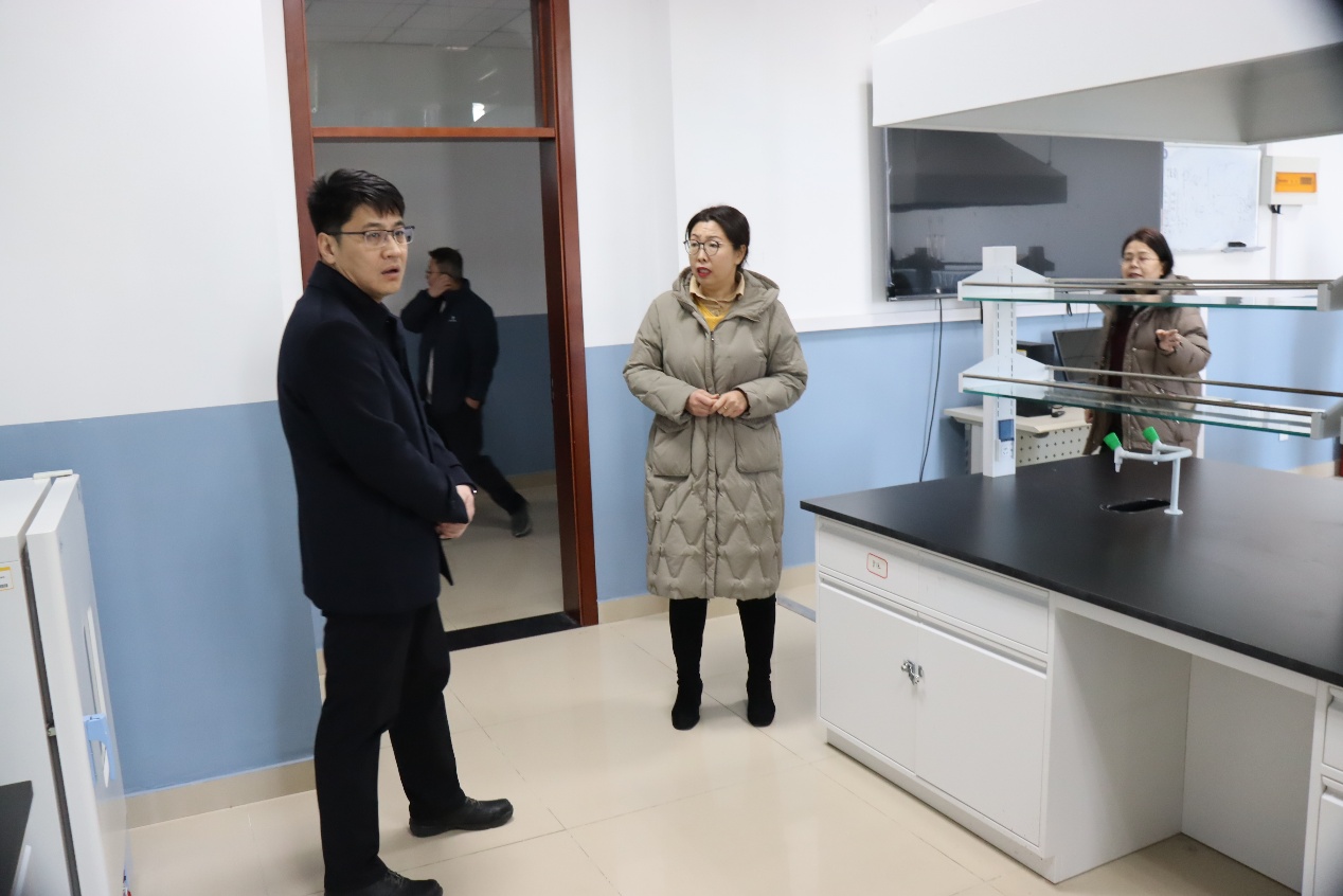 夏毅一行人依次在健康学院、食品与生物工程、机电工程学院等二级学院实验管理方面负责人的陪同下,对各实验室进行了实验教学、安全管理等方面的检查,期间还专门检查了食品药品综合实训中心存放危化品(易制毒、易制爆)实验耗材的专业仓库,并强调了对涉危化品的安全管理要求。